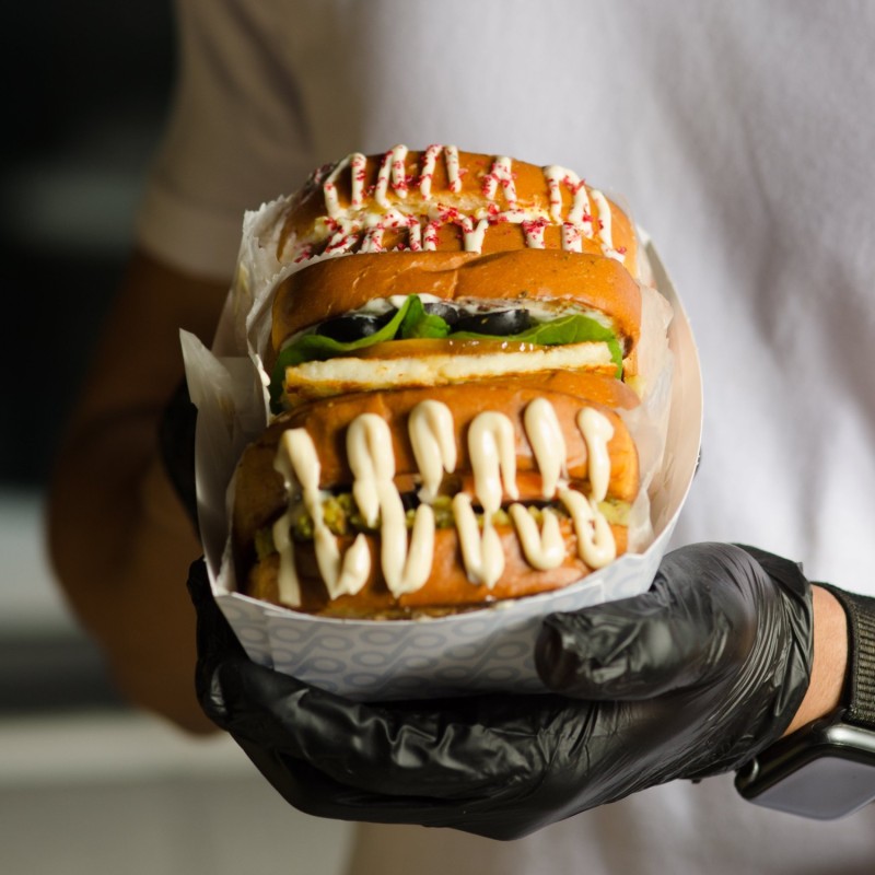 (405 سعرة حرارية)ساندوتش طري بشرايح الحلوم المشوي والطماطم والجرجير وصوص ريشيو الخاص.